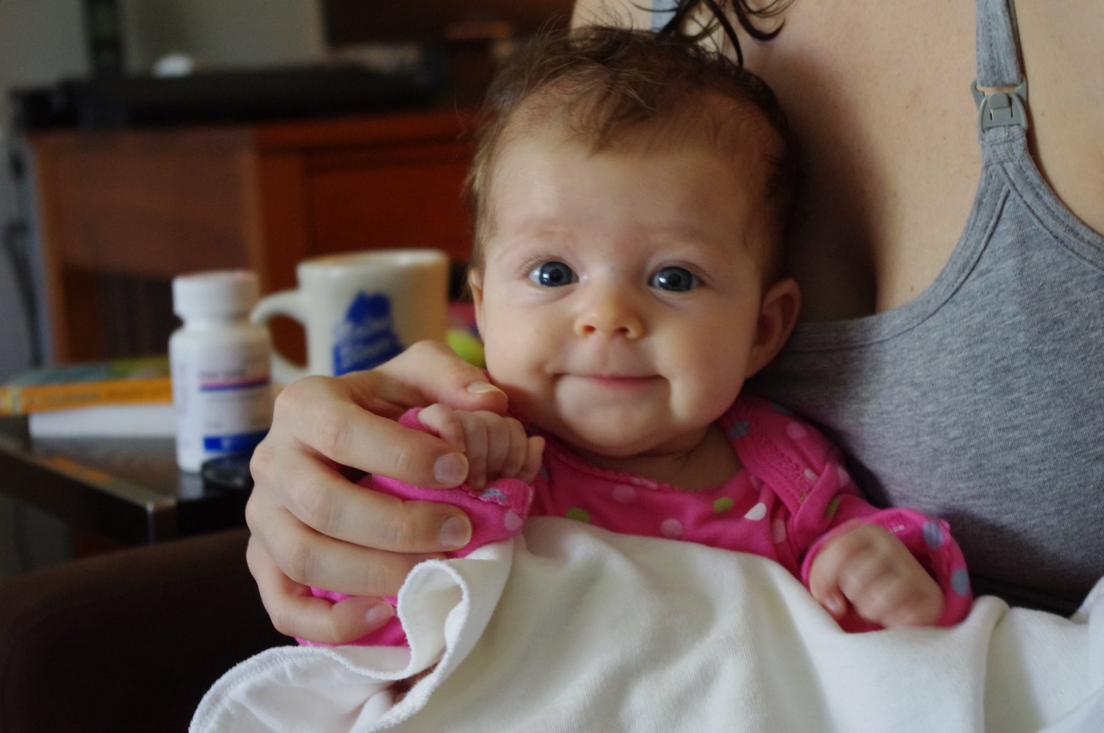 ByMom&DadMom took us for our daily afternoon stroll. Penelope did one of her great smiles that she practiced for her school photo today We had a good chat Then she had to fiddle with my “sleeping bag” Ah all cozy
