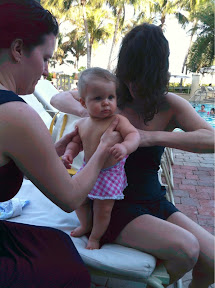 Finally we’re at the hotel and ready for a swim. Aunt Lis and mom are getting me in my new suit that Aunt Lis bought me.