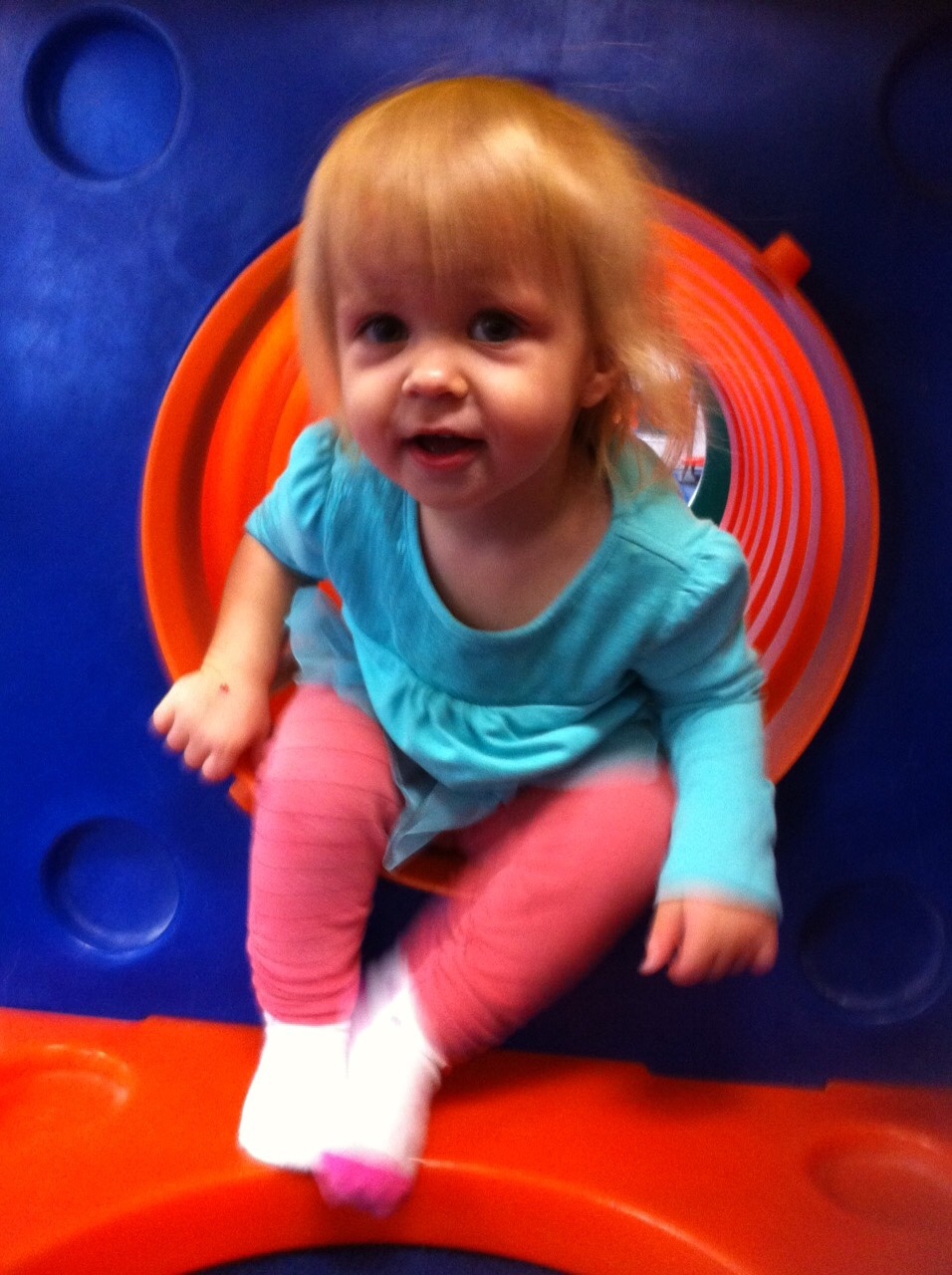 Yesterday I went to the Y with my sitter. I ran around for two hours and popped out of a tunnel. Of course I still had plenty of energy for mom when I got home.