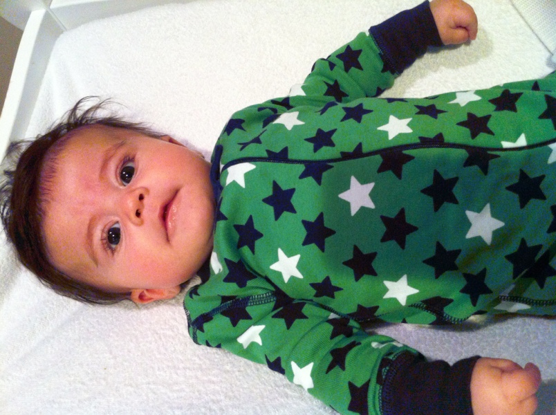 ByMom&DadAfter my bath this morning I took a nap in my swing…of course I woke up right after mom snapped this photo!