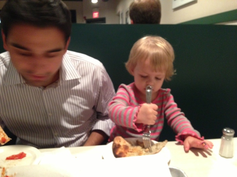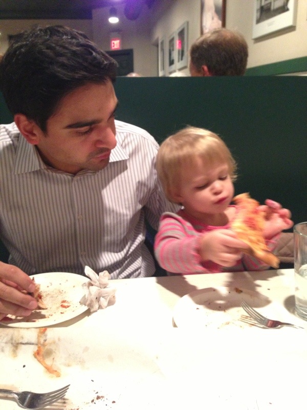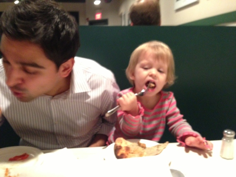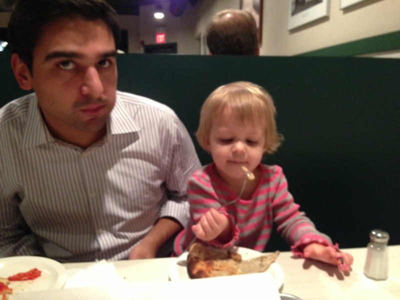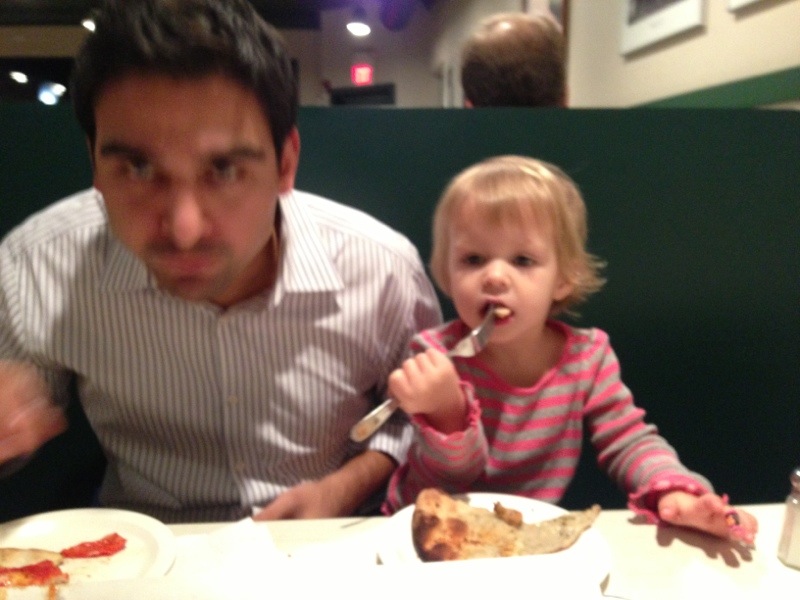 Uncategorized Pepes pizza ByMom&Dad November 6, 2012 On Friday went to the famous Frank Pepes in Fairfield. Since I love my shellfish mom and dad ordered me my own clam pizza. Here I am eating all of the clams off the pizza Lets not forget Naveen! Let me taste dad’s pizza