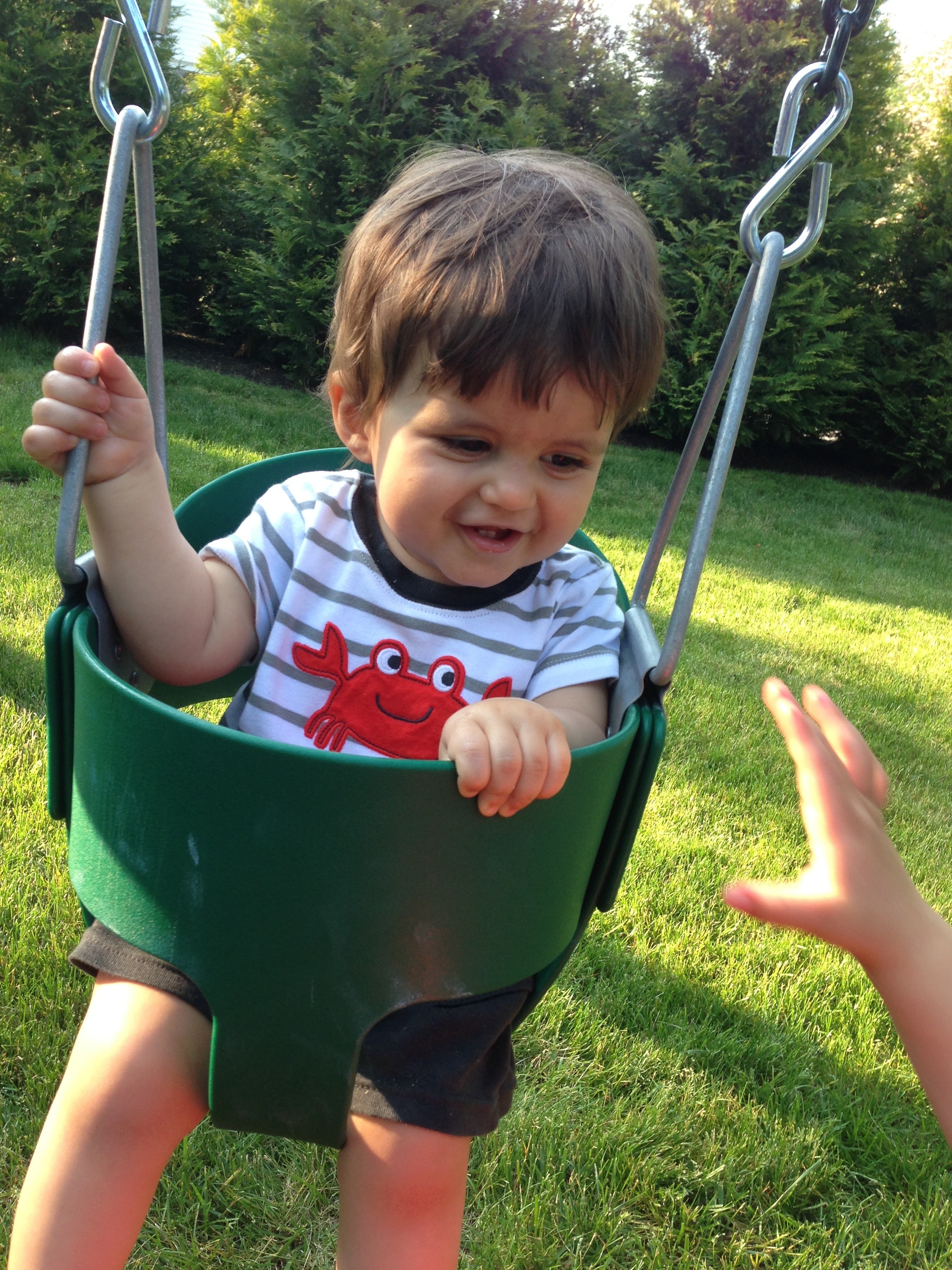 gr’ma Laureen thought that Naveen was a joy to be around. He loved to do Horsey trot on knees and “here we go duckie to market.” He has a contagious laugh!!” Love being with him. Gr’ma L.