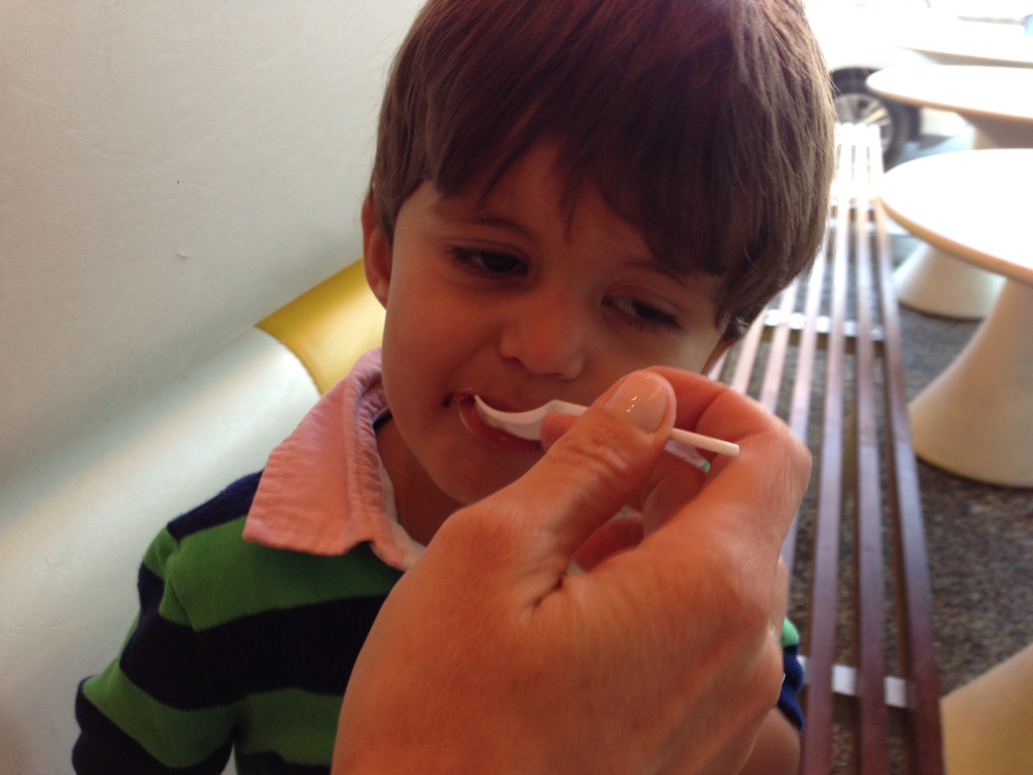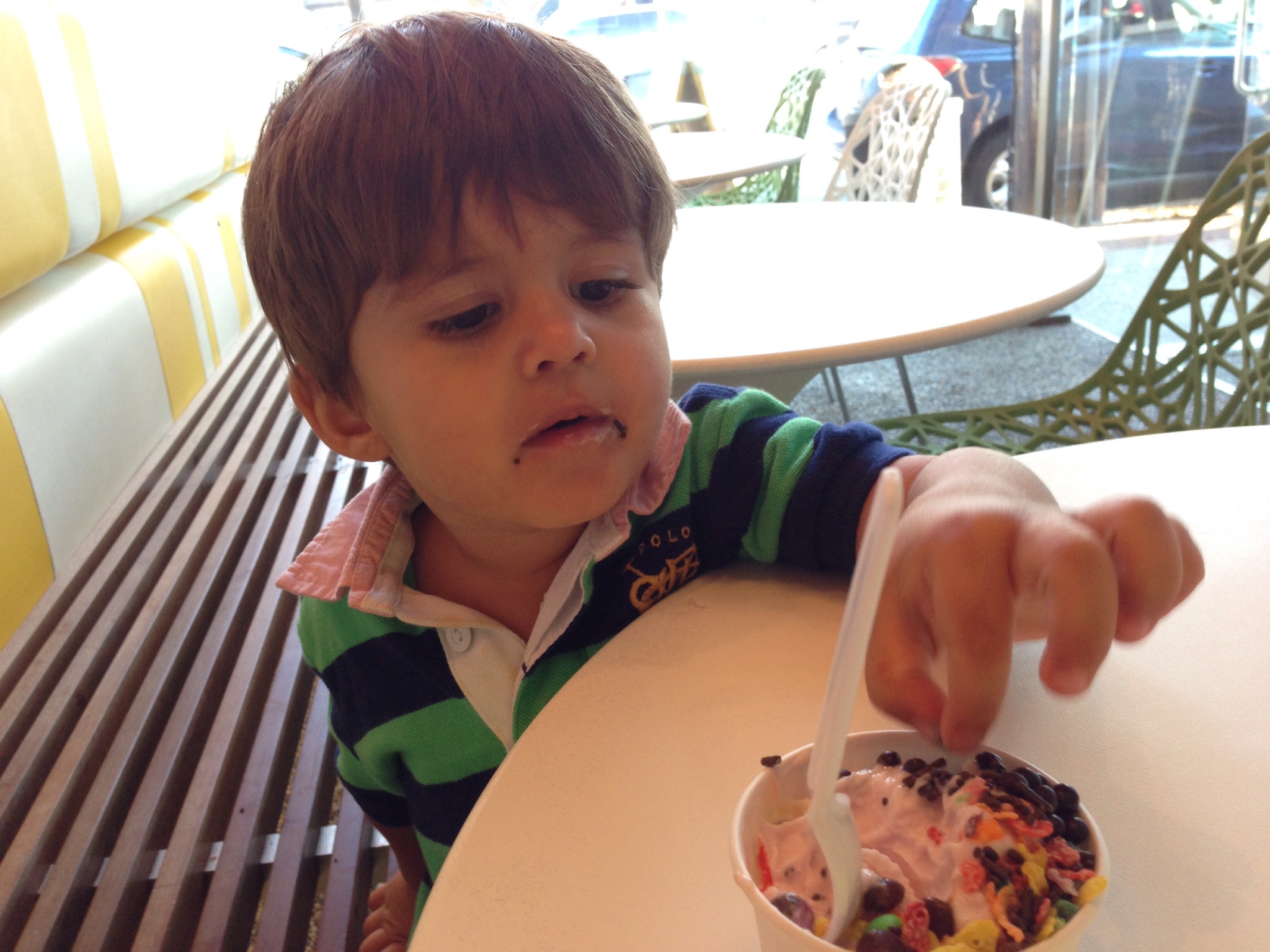 ByMom&DadYesterday we had a pinkberry playdate at preschool. I ate a big sundae and the teachers took a picture of us standing at the window. I’m wearing yellow.