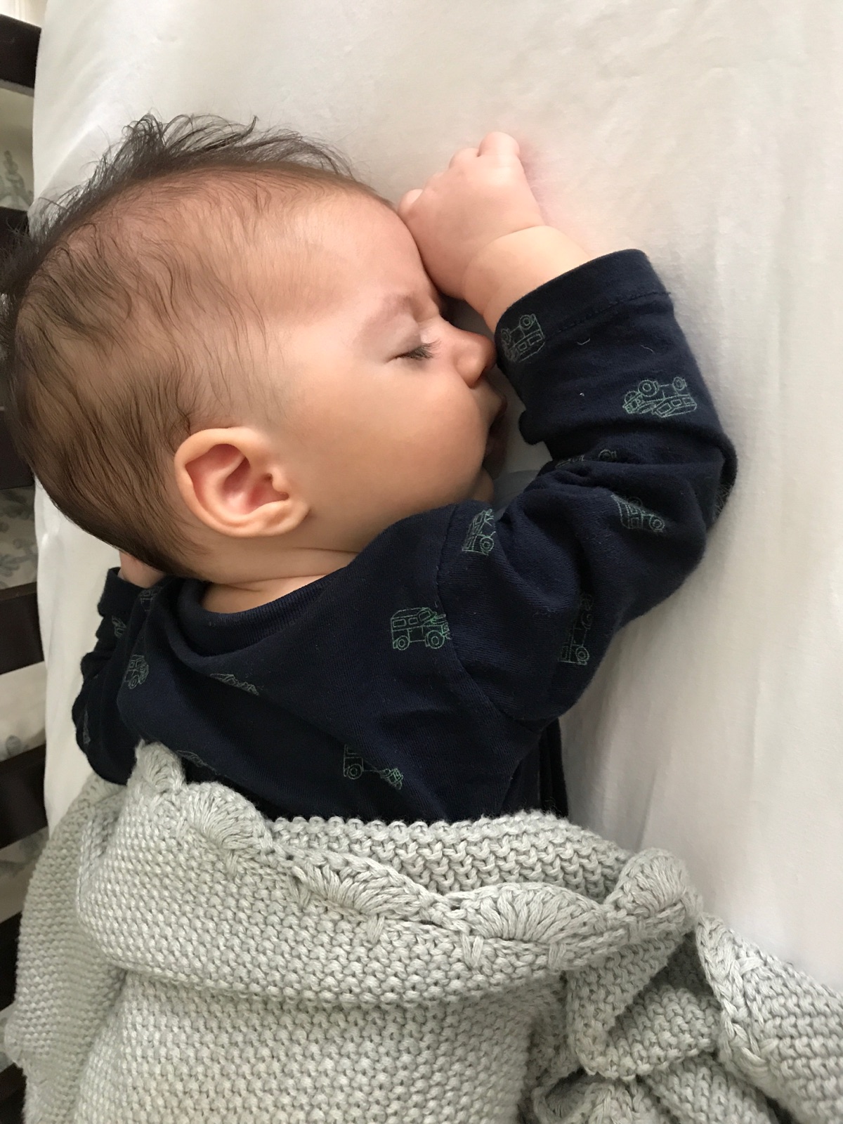 Here are my new stats: Height: 27 inches, 97 percentile Weight: 15 lbs, 50 percentile Head: 43.5 cm, 75 percentile I’m long and lean!