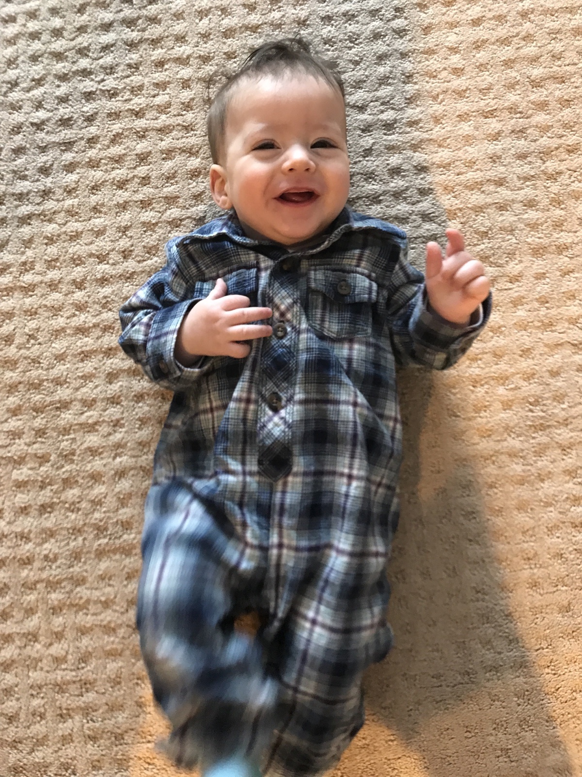 After my bath this morning I took a nap in my swing…of course I woke up right after mom snapped this photo!