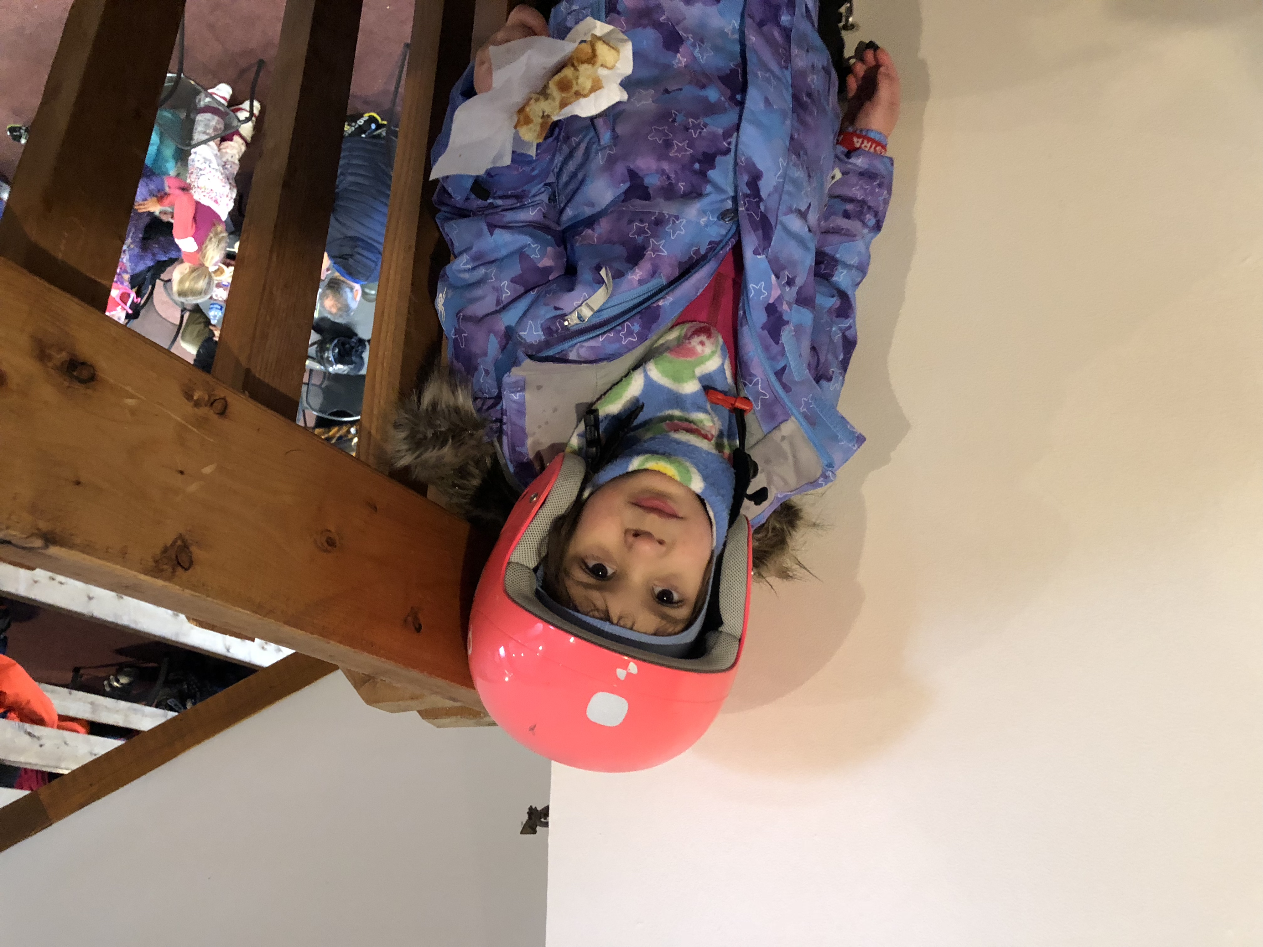 Naveen, Freya, Dad and Mom also got a chance to enjoy skiing in the deep powder. Here’s a pic of Freya taking a quick break to eat a waffle.