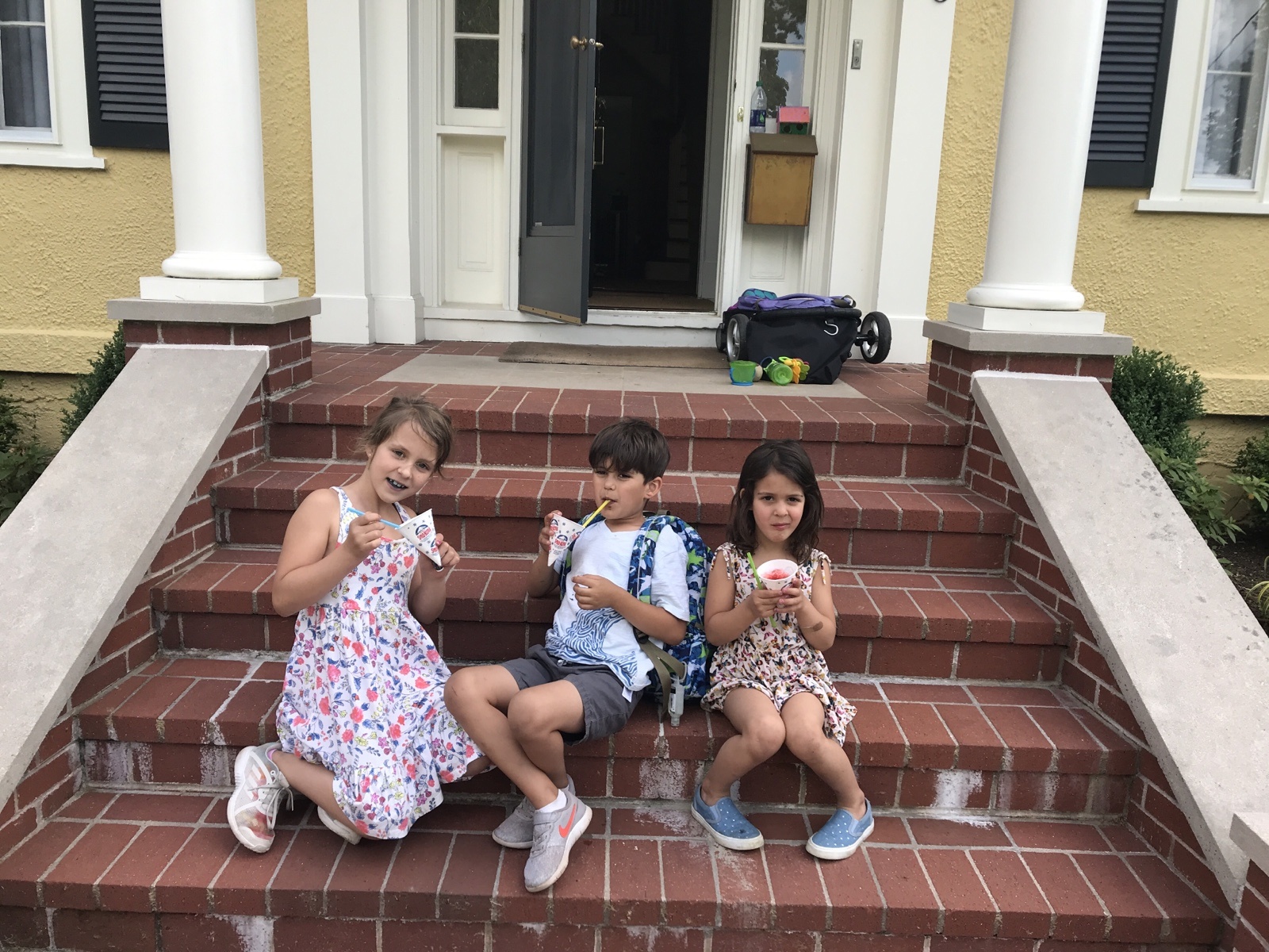 Pretty cool when your neighbors have a sno cone stand! $6 well spent for 3 Cones. Penelope, Naveen and Freya thought those kids were the luckiest kids in the world to have a sno come machine. They may pool their allowance to get one….or a ferret.*