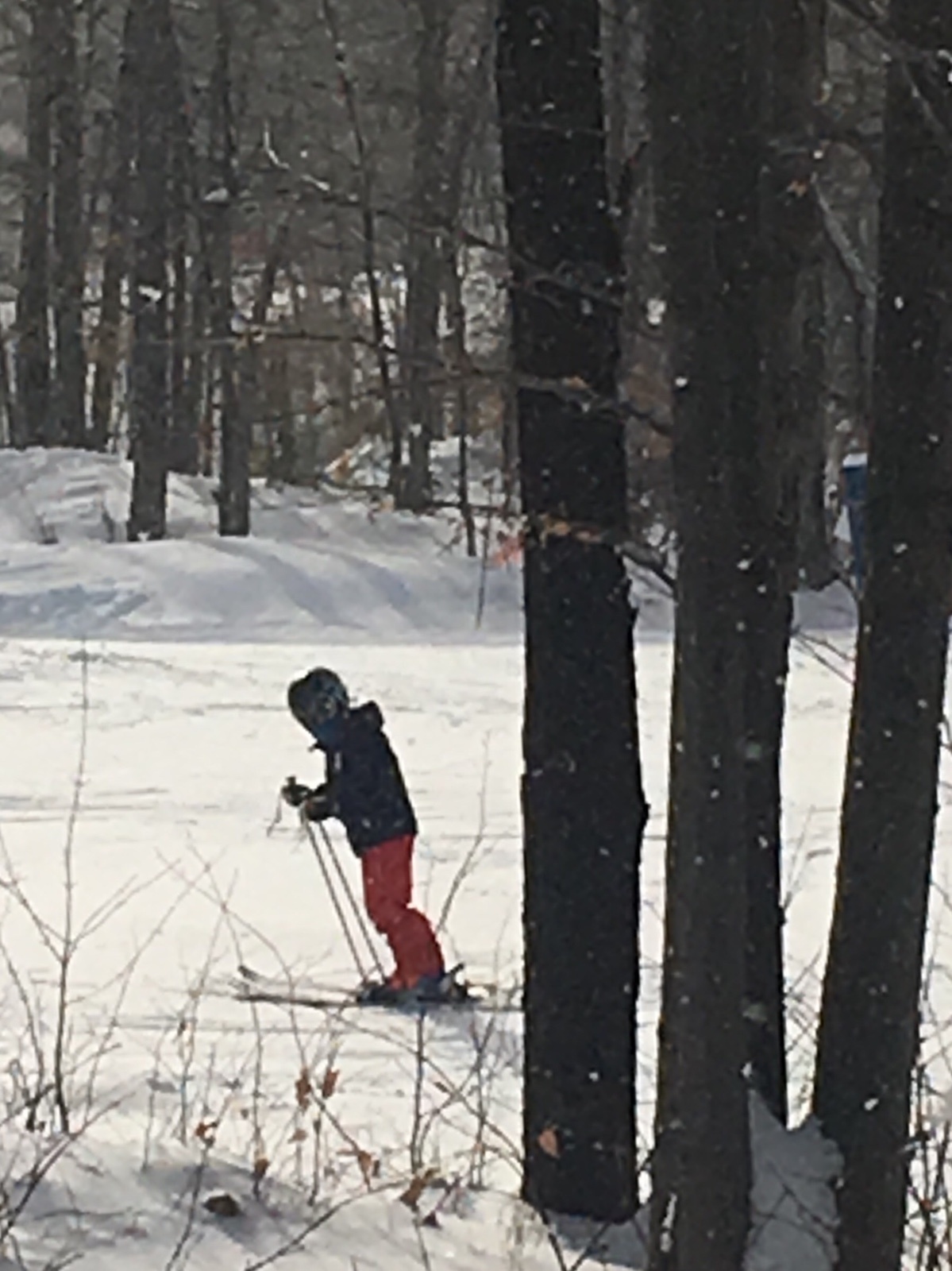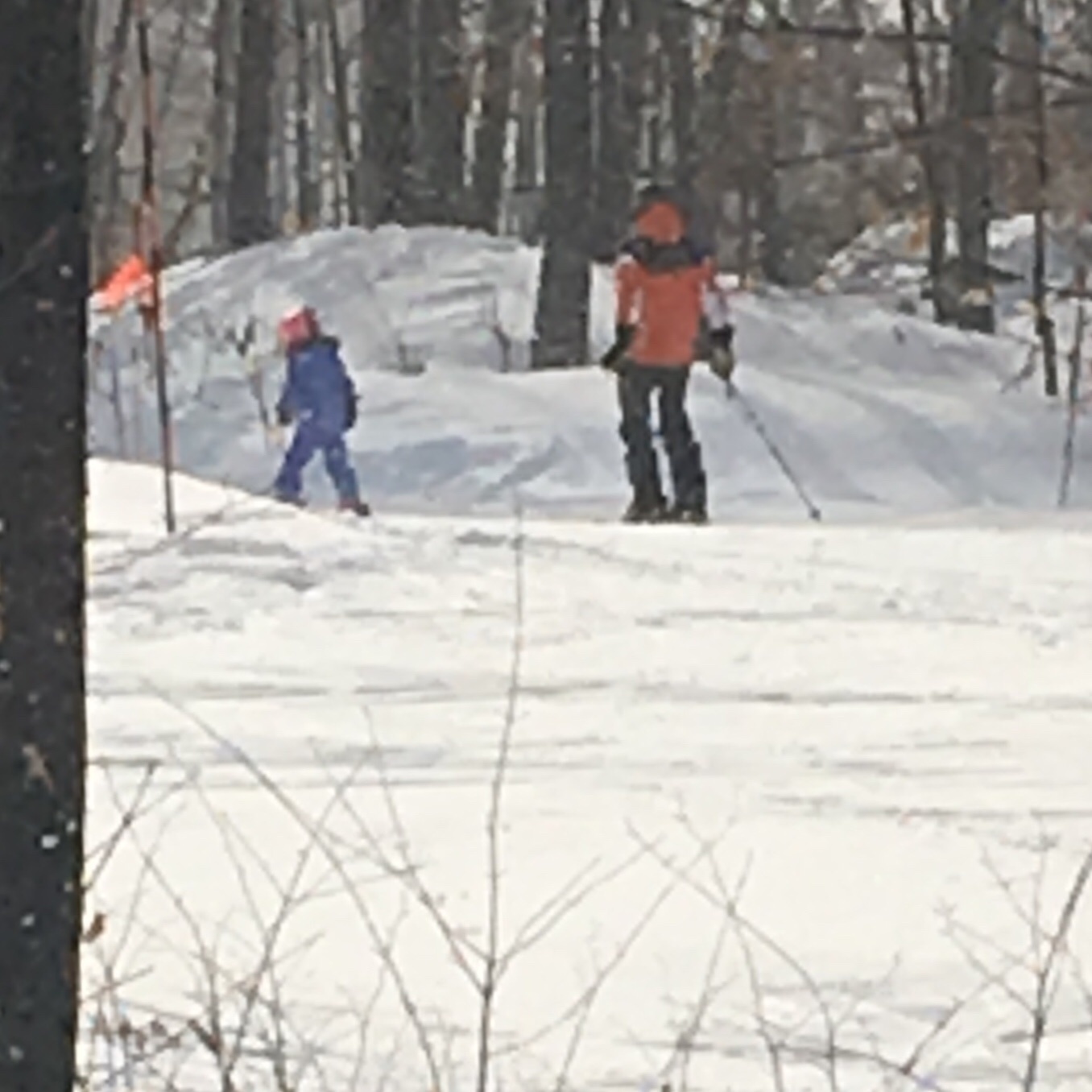 Dad and kids skiing