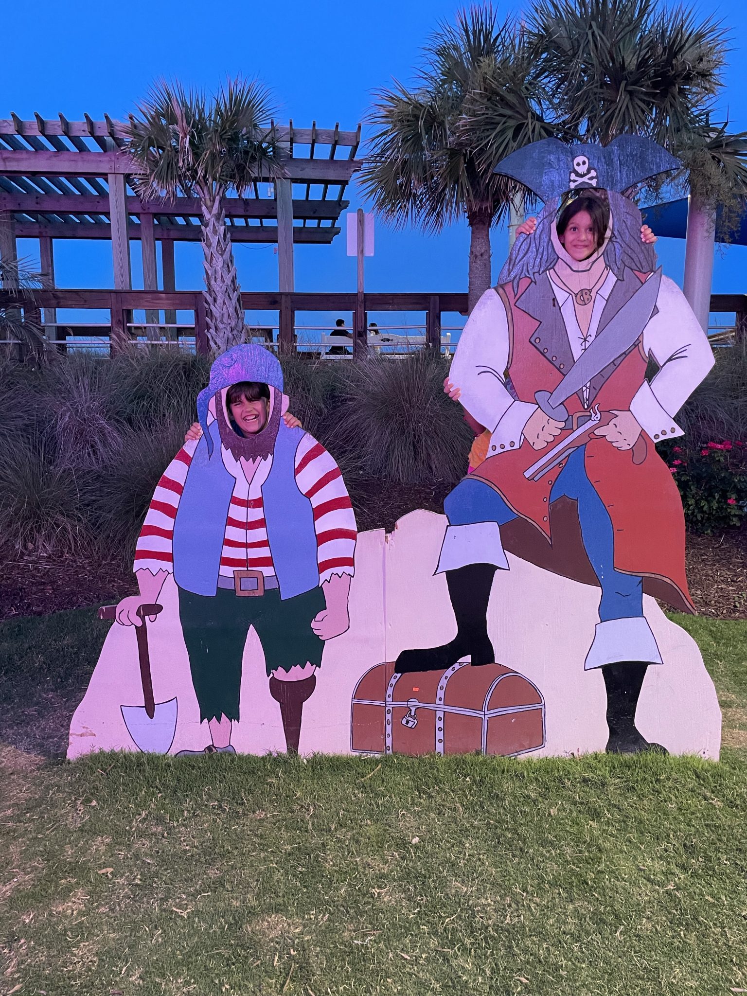Sunday we hit up the beach but Monday was a stormy day so we went to the aquarium a few miles down the road. Then later that day we went to the nearby state park and the kids found some little crabs. Tuesday the weather was great and the kids got some good boogie boarding in. Tonight (Wednesday) we hit up the Carolina Beach Boardwalk and took some funny photos! Freya made some priceless faces….